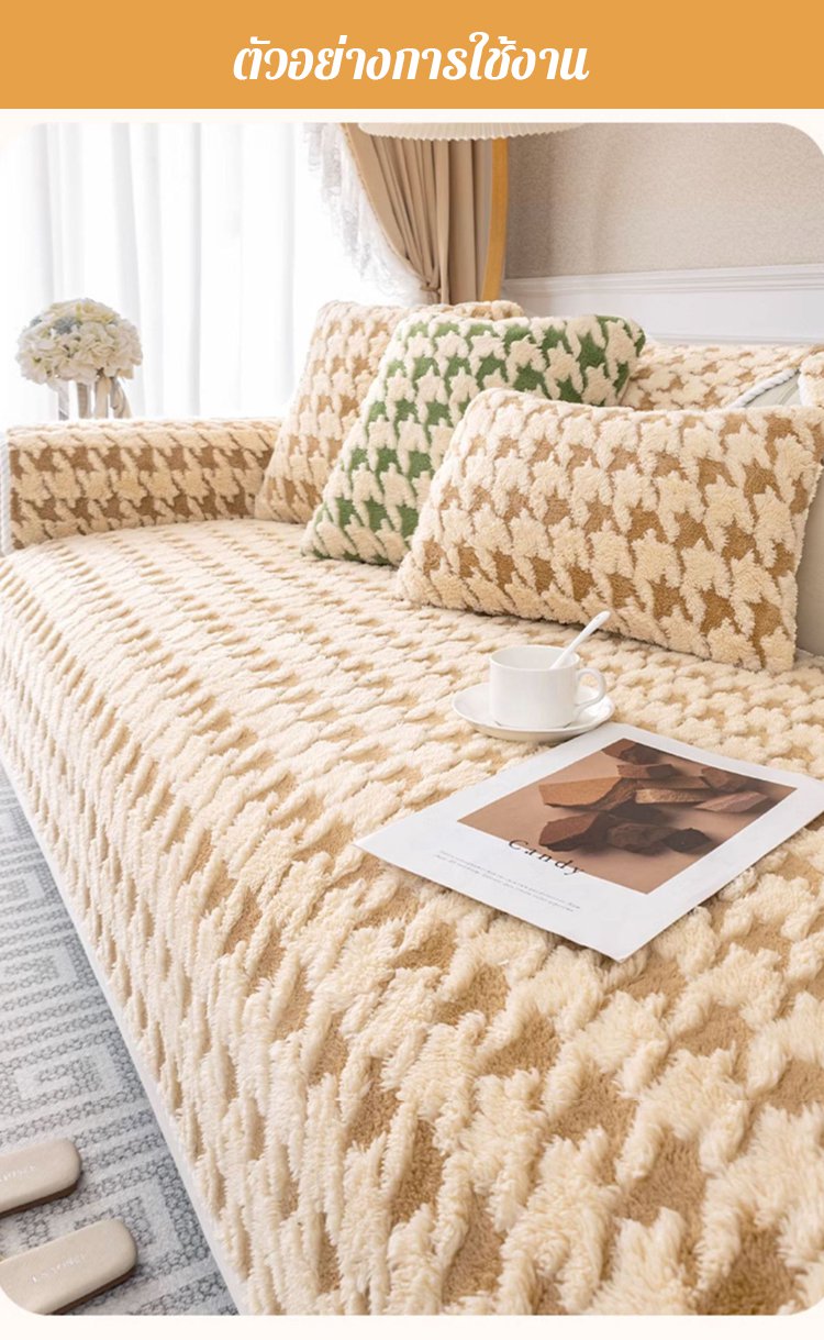 ผ้าปูโซฟาบุขนลายฟันสุนัขกันลื่น